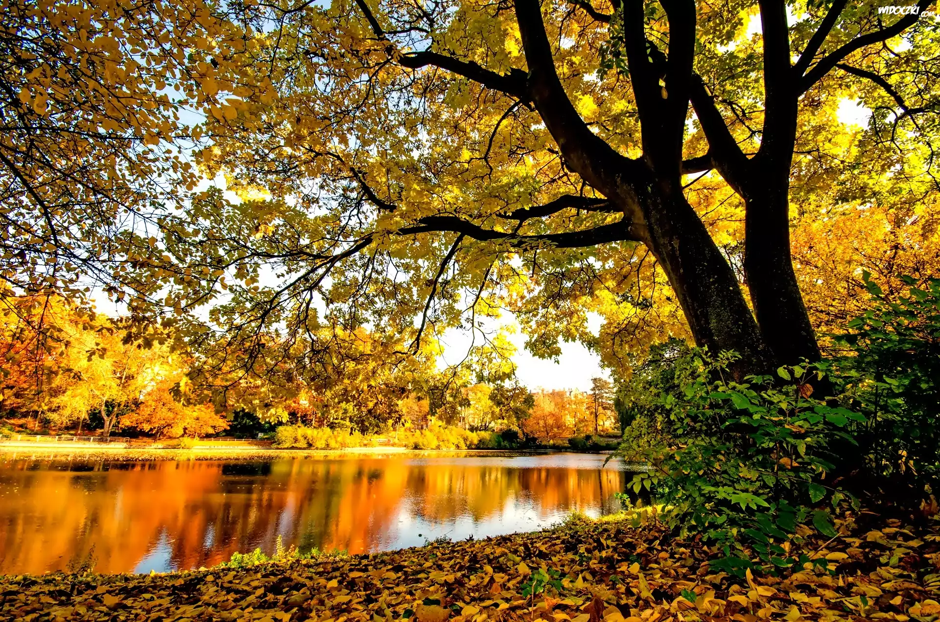 Zdjęcia, Jesień, Drzewa, Rzeka, Liście