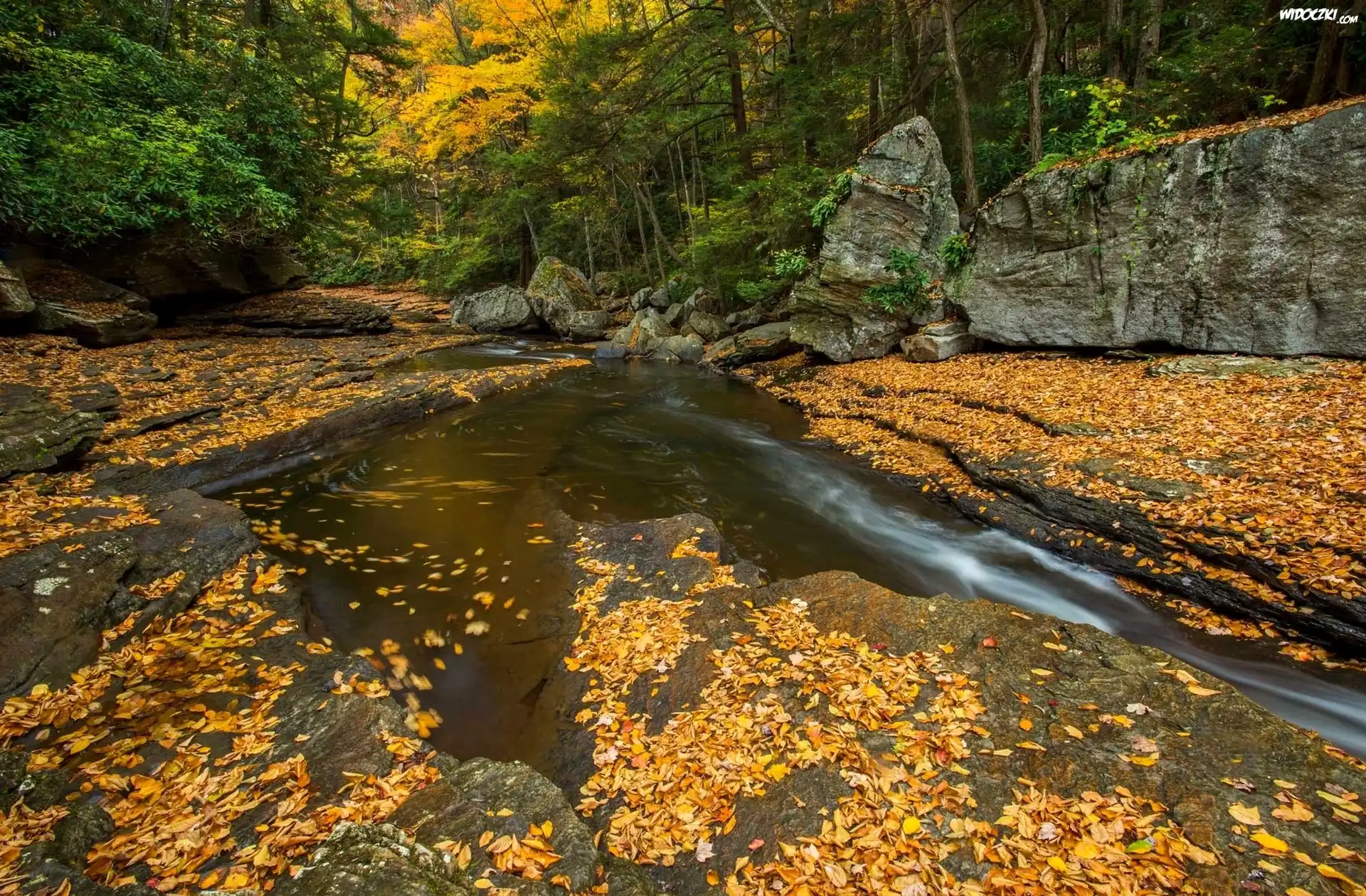 Zdjęcia, Jesień, Las, Rzeka, Skały