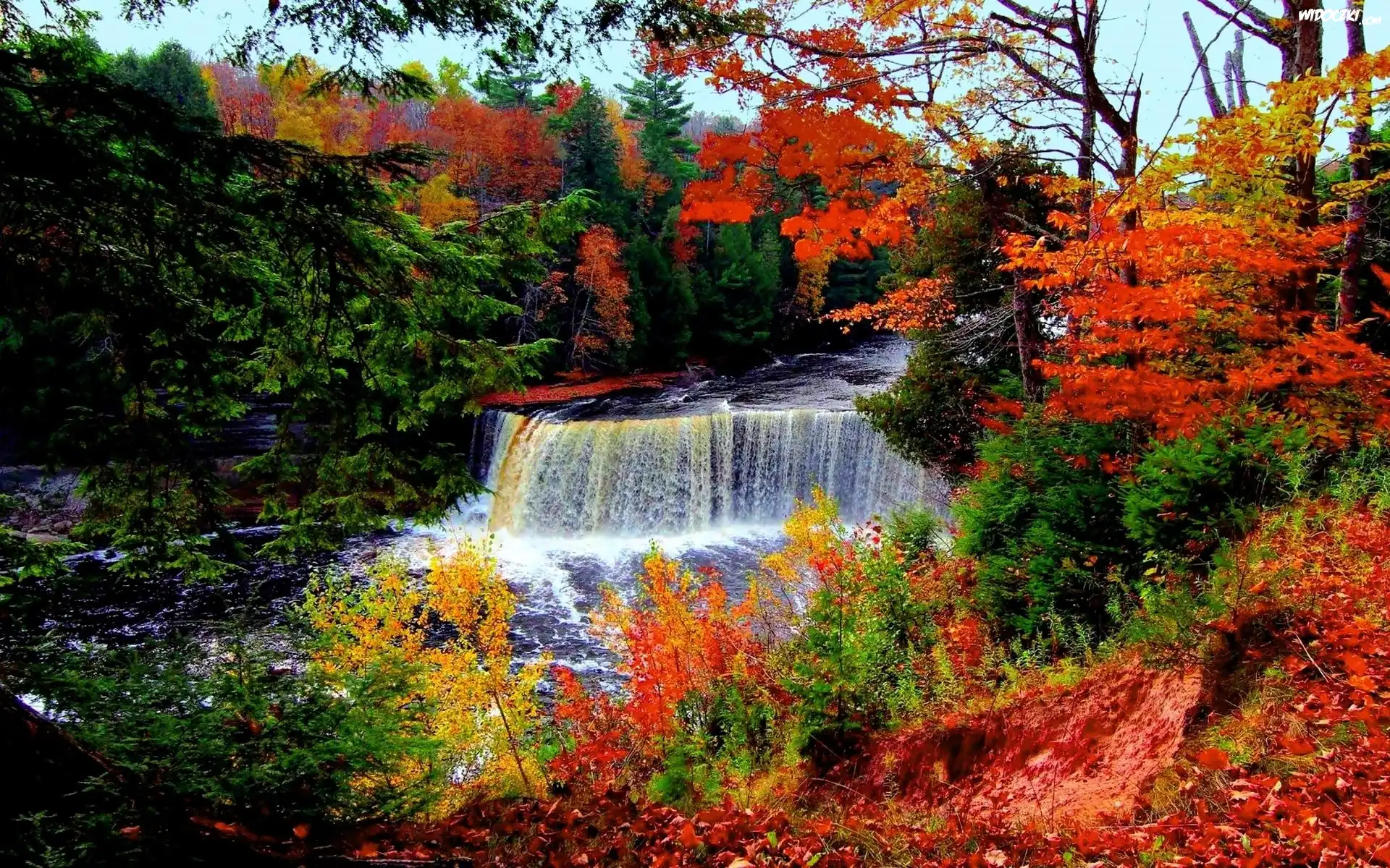 Jesień, Las, Rzeka, Wodospad