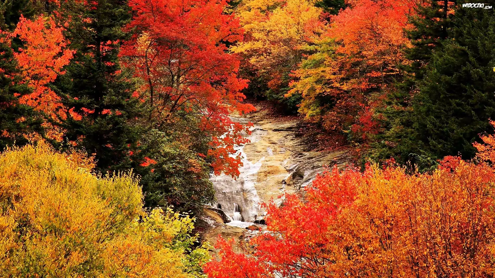 Zdjęcia, Jesień, Las, Rzeka, Wodospad