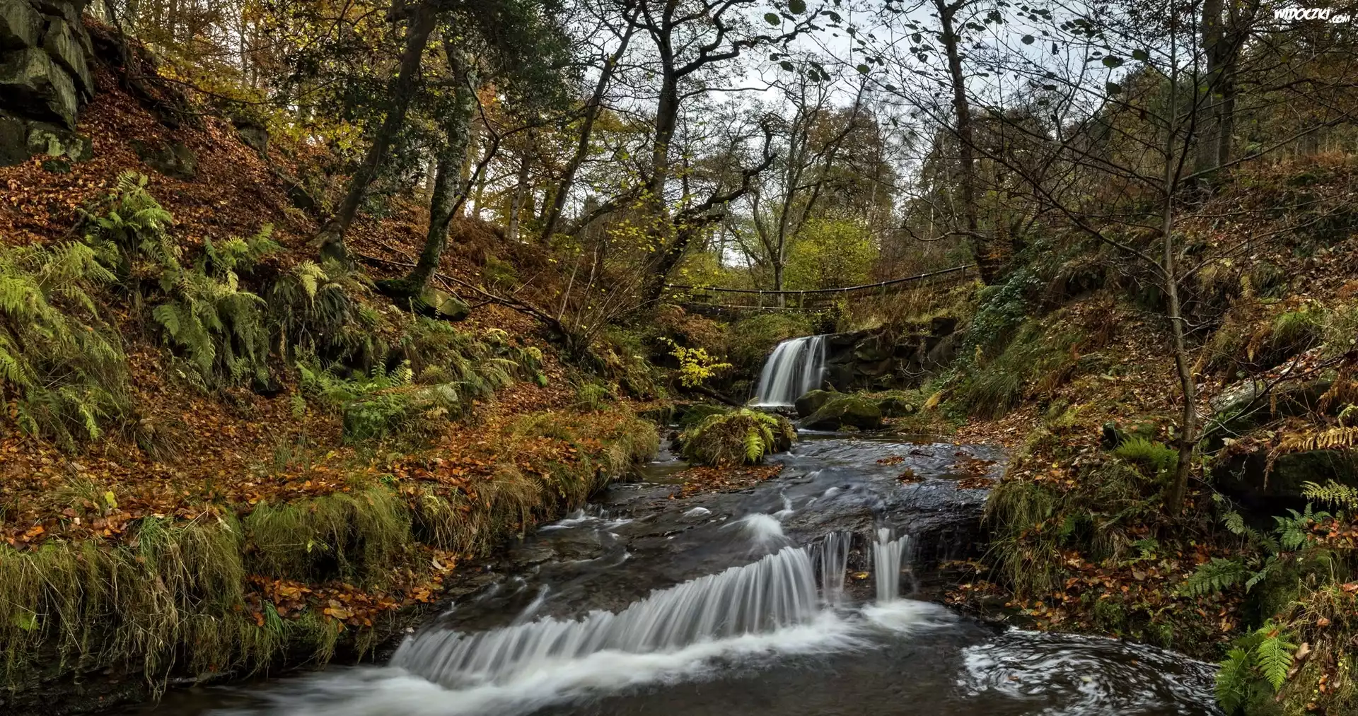 Zdjęcia, Jesień, Mostek, Rzeka, Drzewa