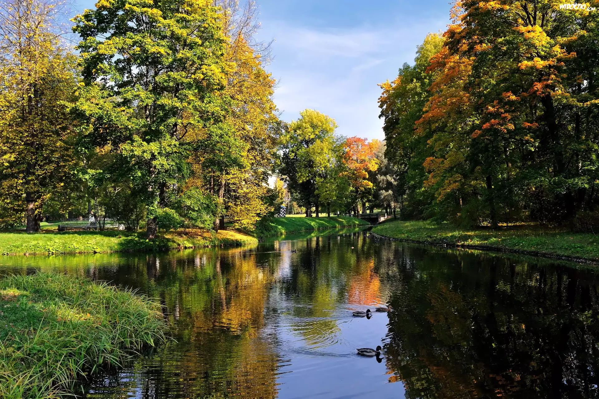 Jesień, Park, Rzeka, Odbicie