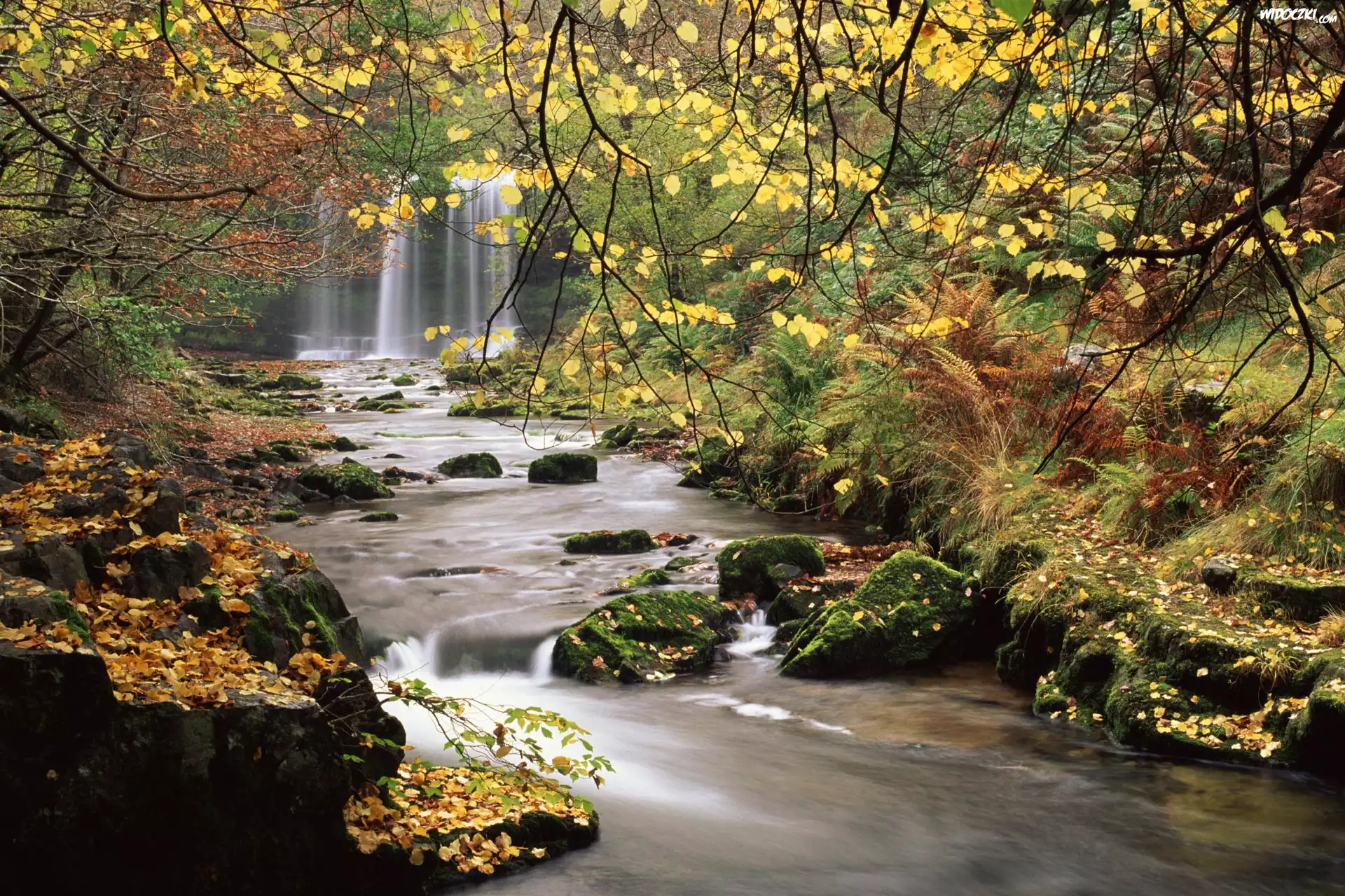 Zdjęcia, Jesień, Wodospad, Rzeka, Kamienie
