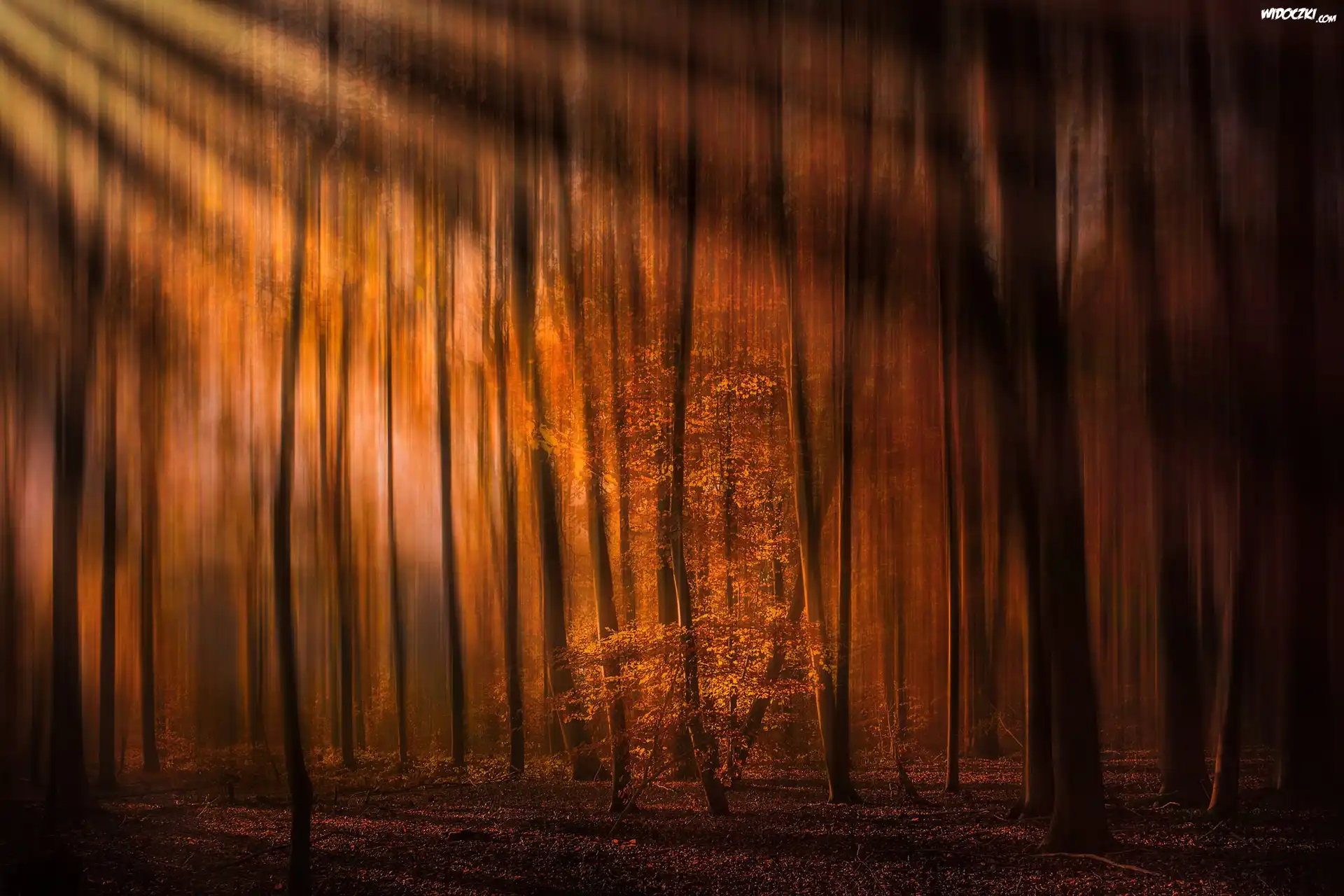 Jesień, Las, Przebijające światło, Smukłe, Drzewa