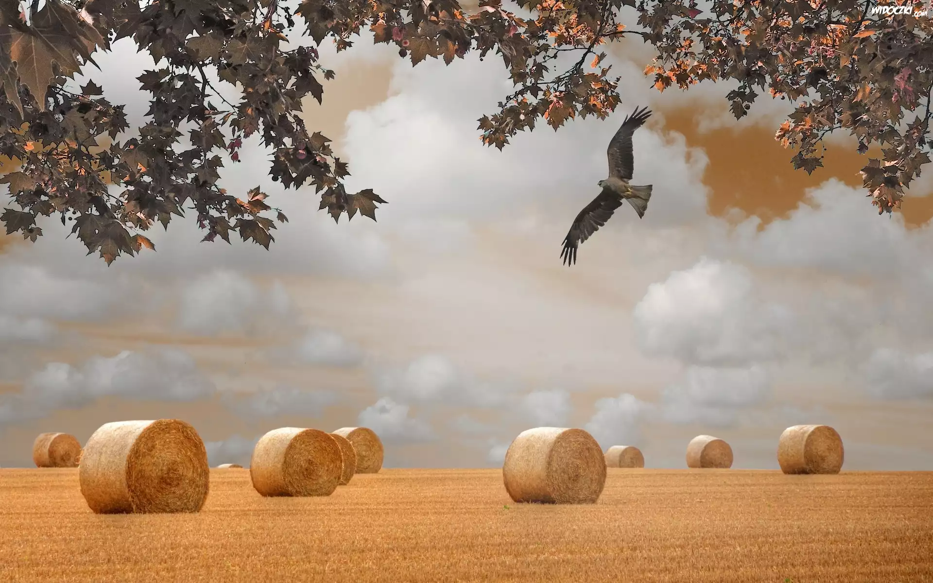 Zdjęcia, Jesień, Pole, Zboże, Snopy, Sokół