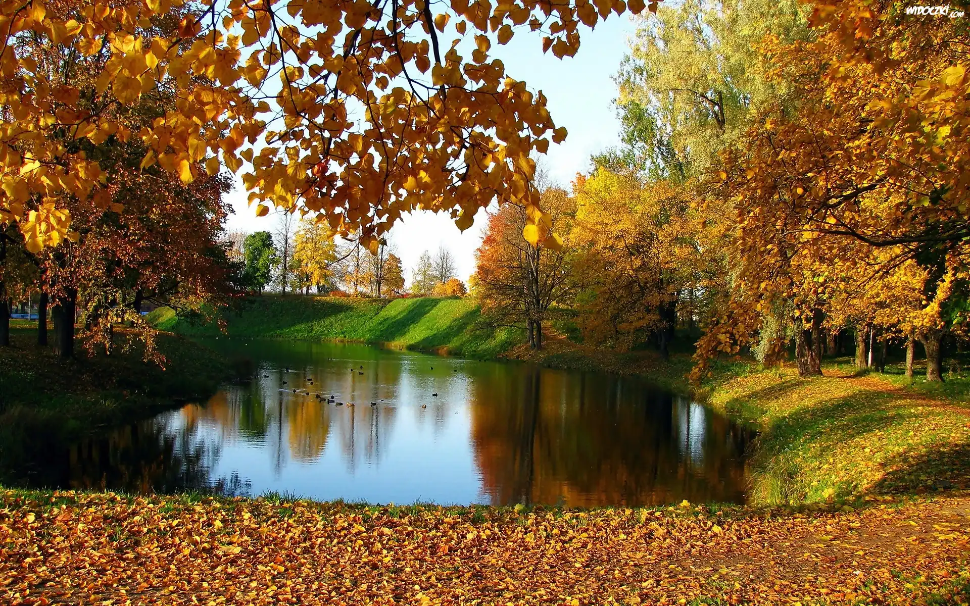 Zdjęcia, Jesień, Park, Staw, Kaczki