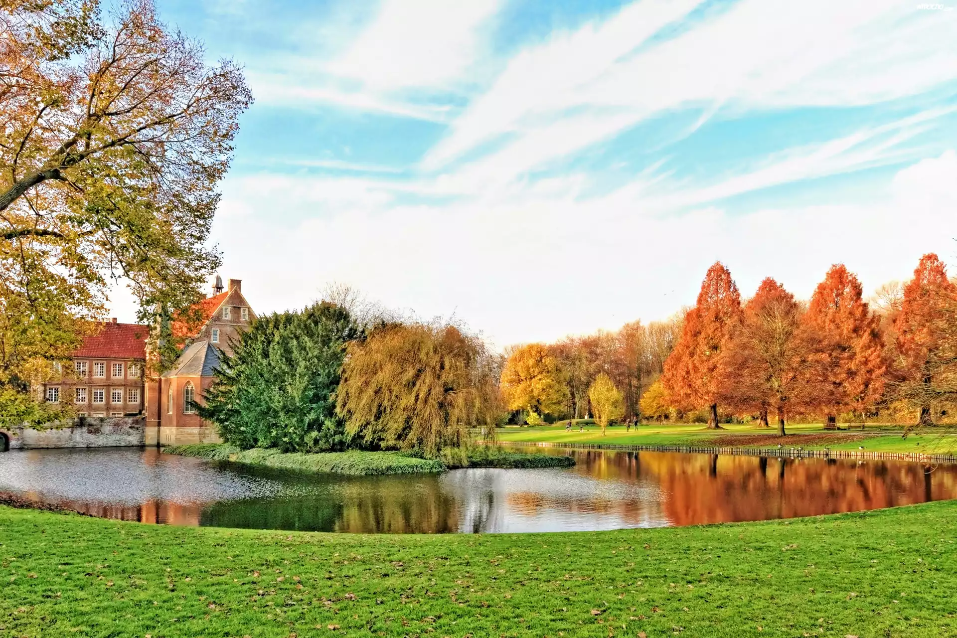 Zdjęcia, Jesień, Park, Staw, Pałac