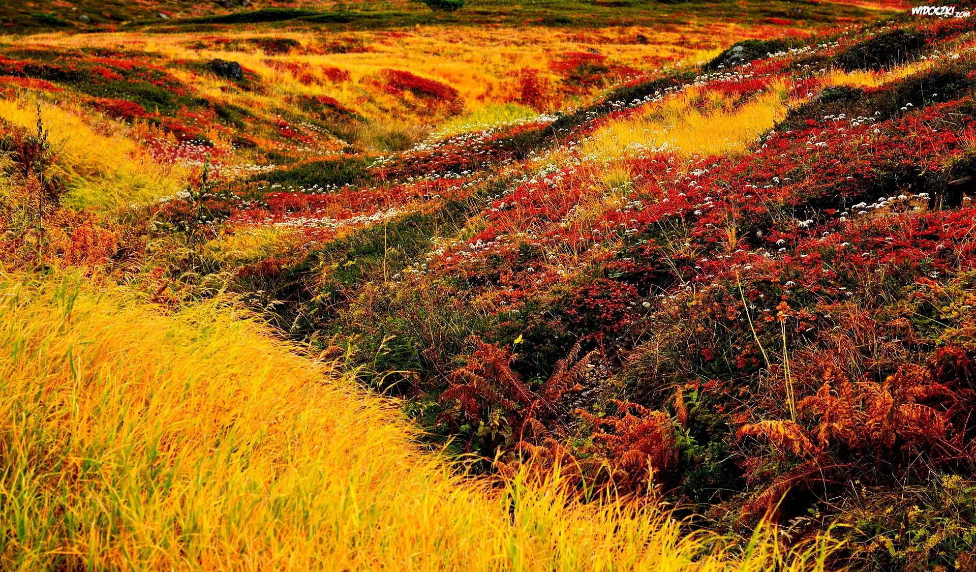Zdjęcia, Jesień, Łąka, Trawa, Rośliny