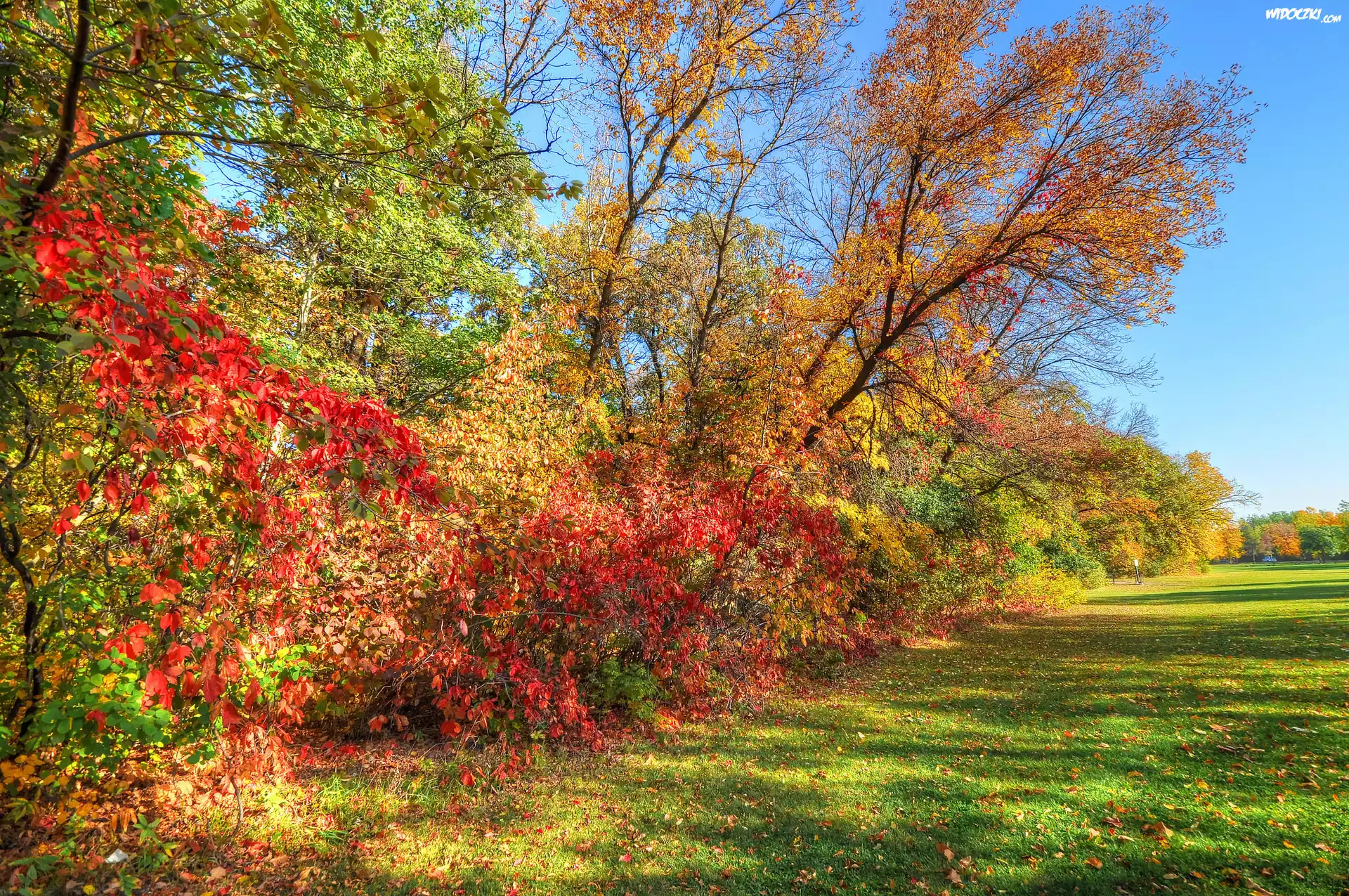 Zdjęcia, Jesień, Drzewa, Trawa, Liście