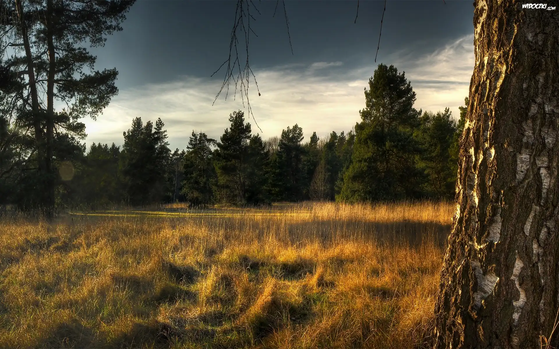 Zdjęcia, Jesień, Las, Polana, Trawa, Drzewa