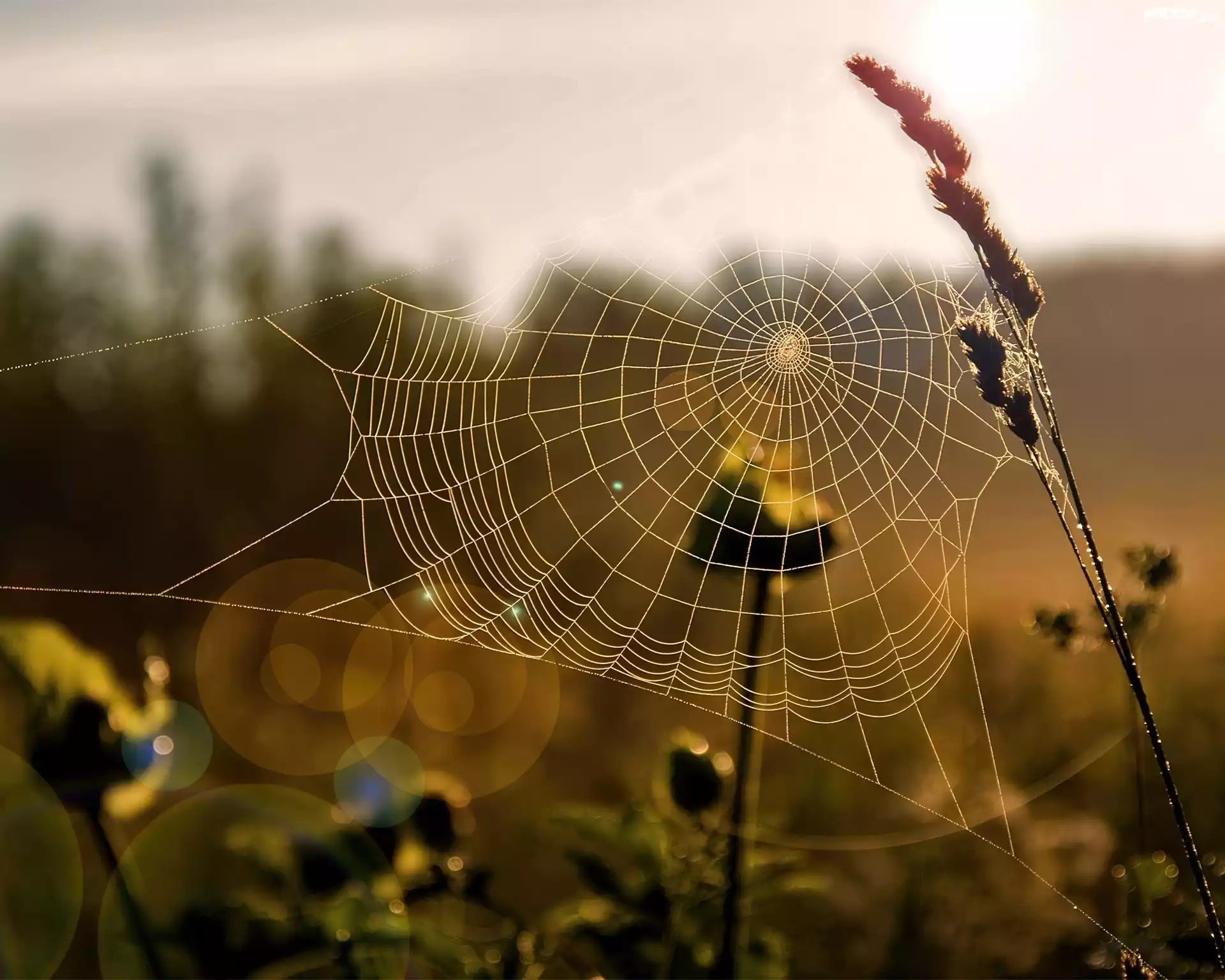 Jesień, Kwiaty, Suche, Trawy, Pajęczyna