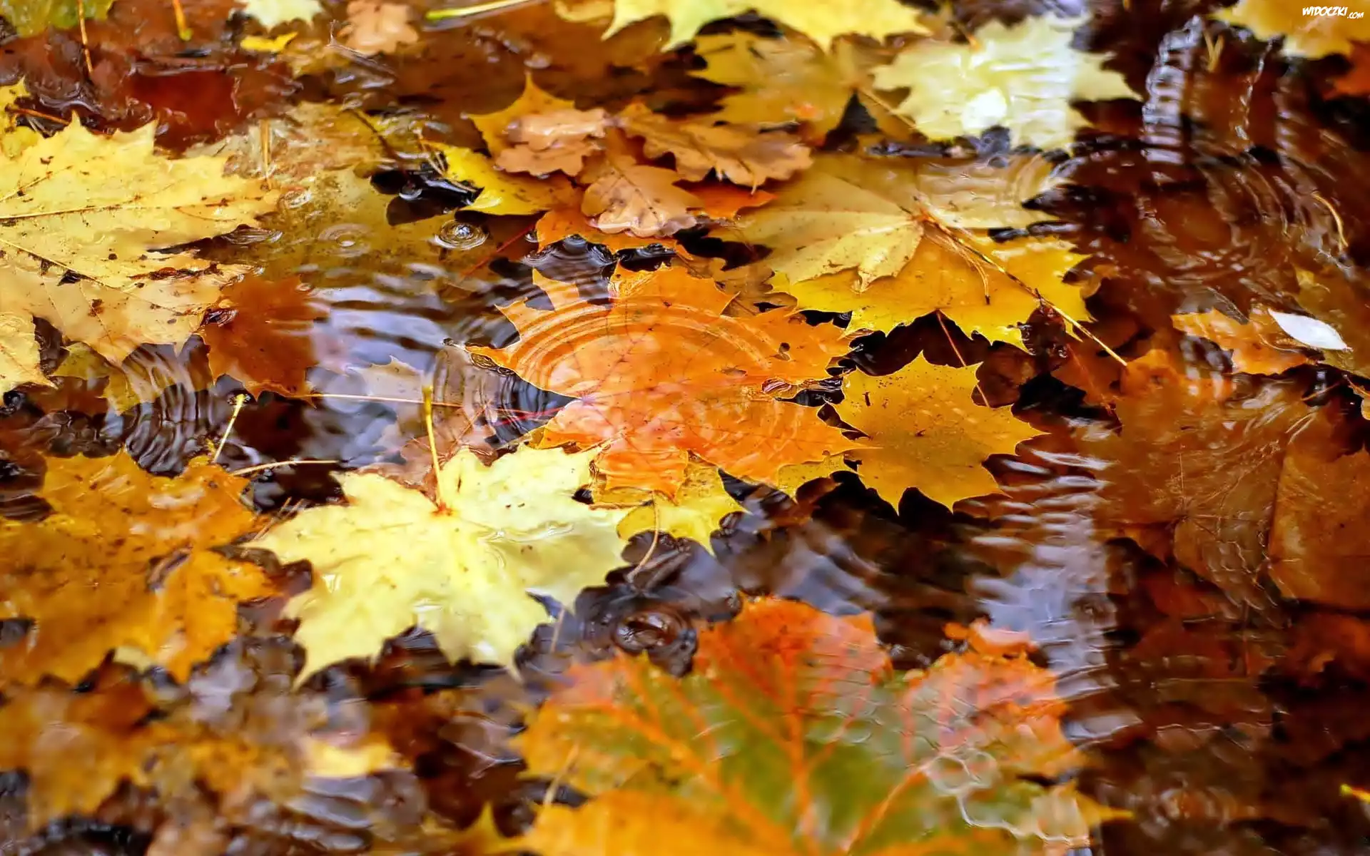 Zdjęcia, Jesień, Liście, W Wodzie