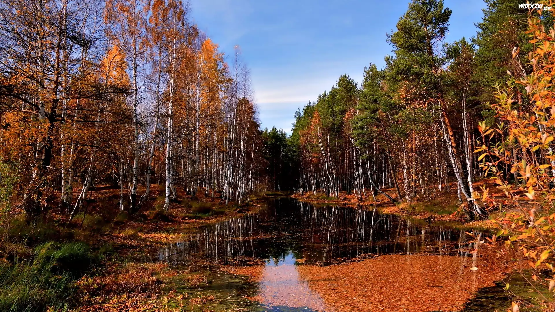 Zdjęcia, Jesień, Las, Woda, Liście