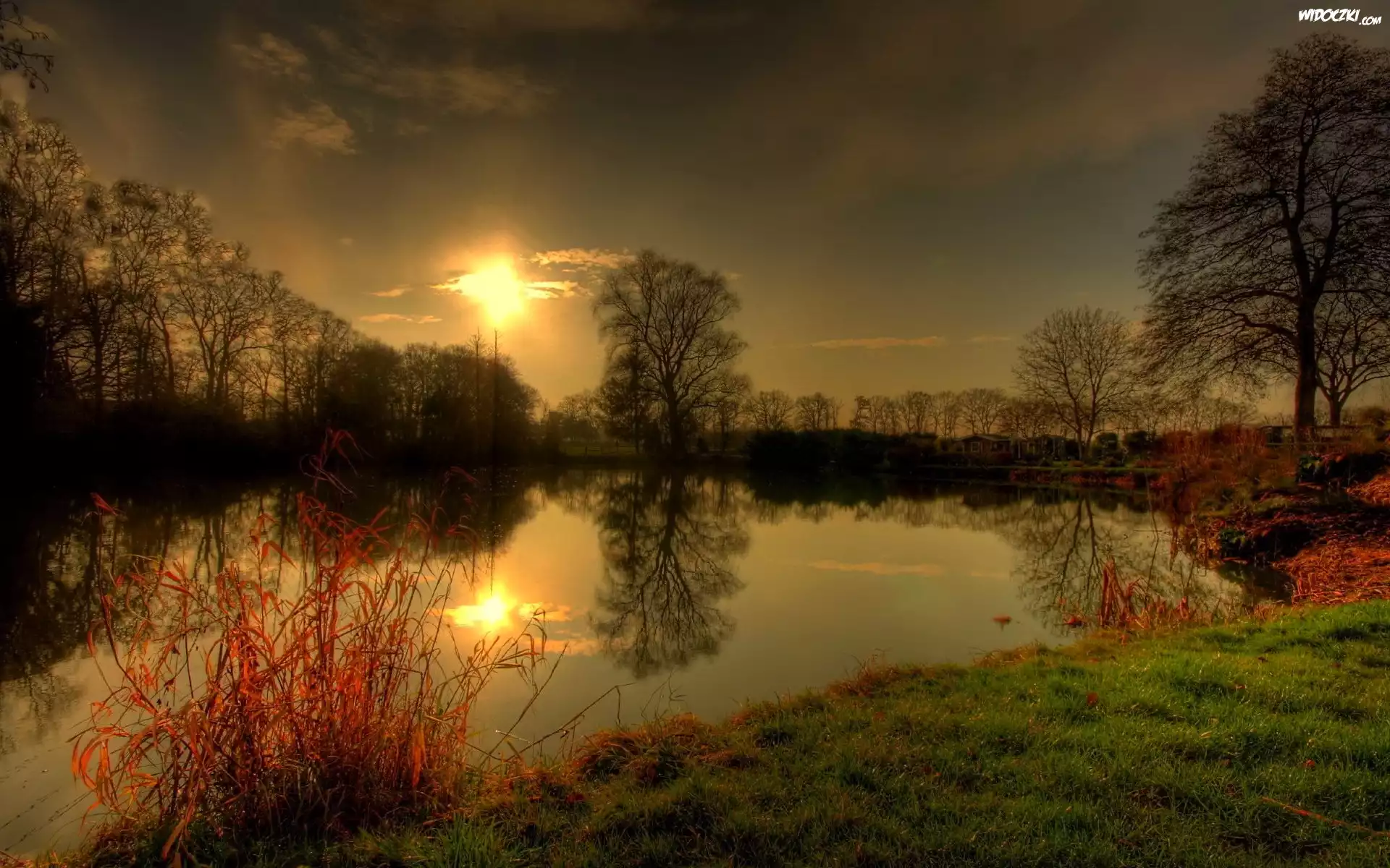 Zdjęcia, Jesień, Jezioro, Zachód, Słońca