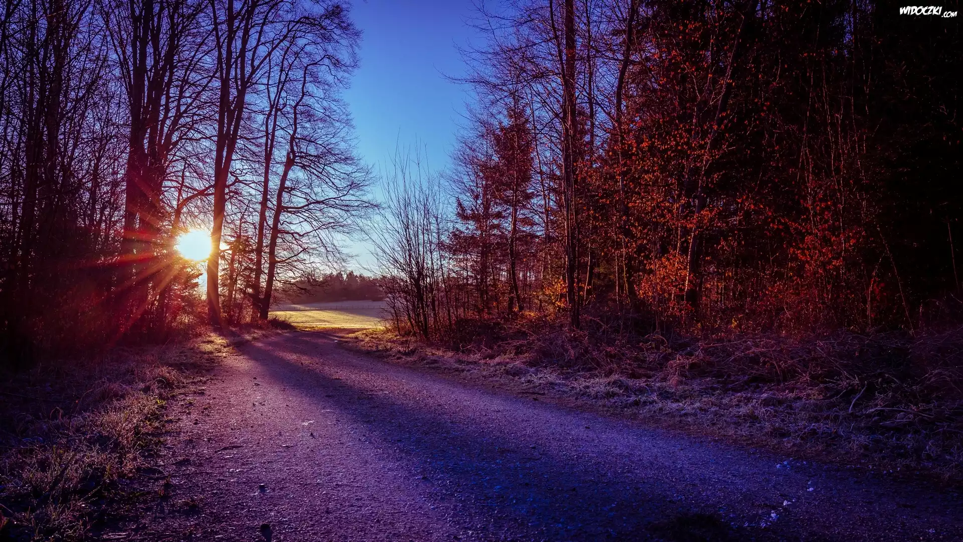 Zdjęcia, Jesień, Droga, Las, Zachód, Słońca