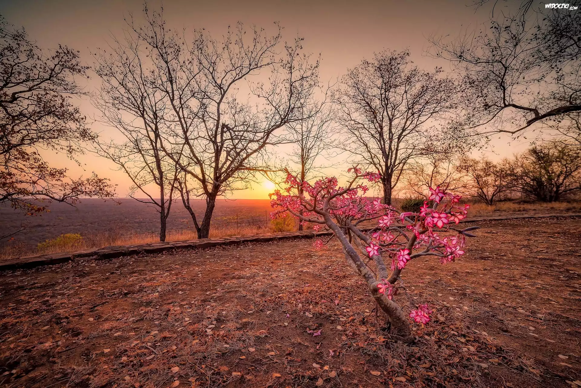 Jesień, Drzewa, Liście, Zachód, Słońca