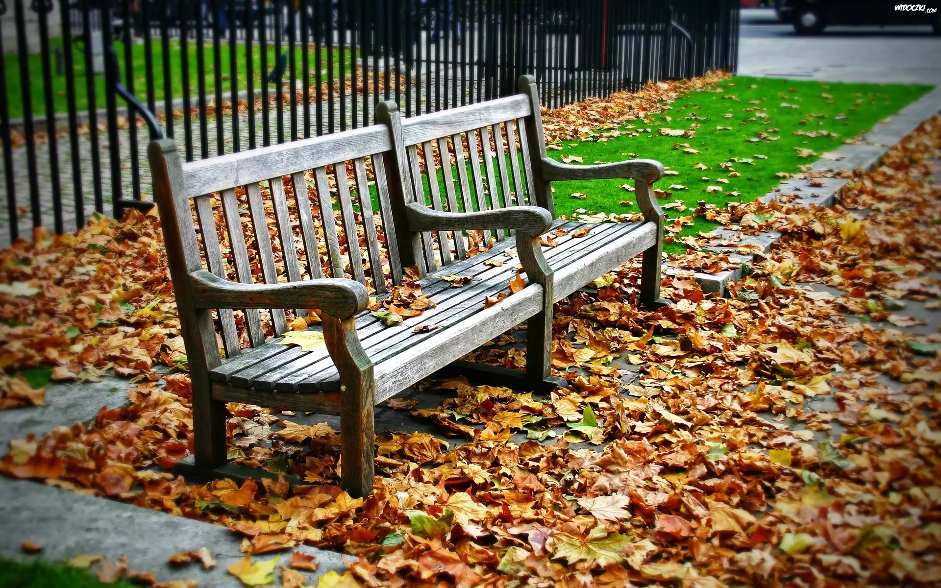 Ławka, Jesienne, Liście