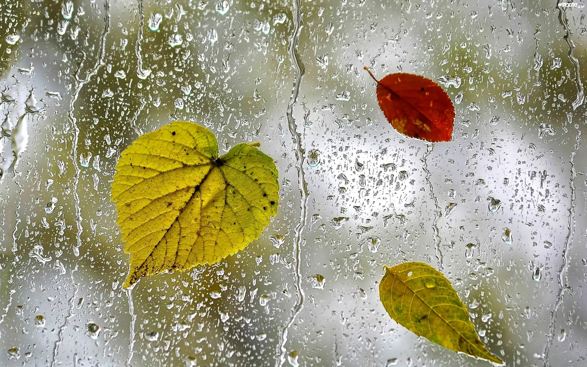 Jesienne, Liście, Szyba, Krople, Deszczu