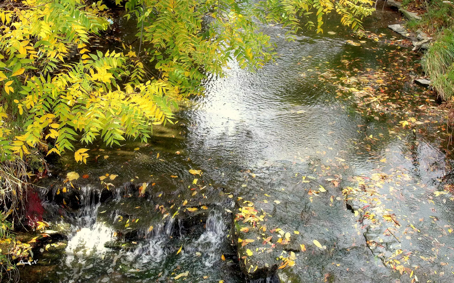 Zdjęcia, Jesienne, Drzewa, Liście, Rzeka