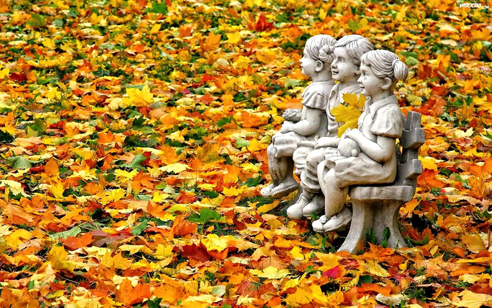 Zdjęcia, Jesienne, Liście, Posążki, Dzieci