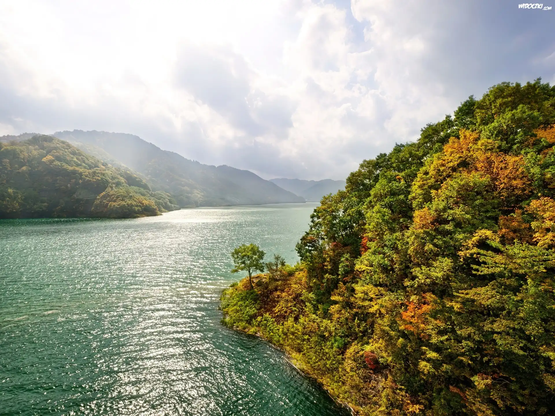 Zdjęcia, Rzeka, Jesienne, Drzewa