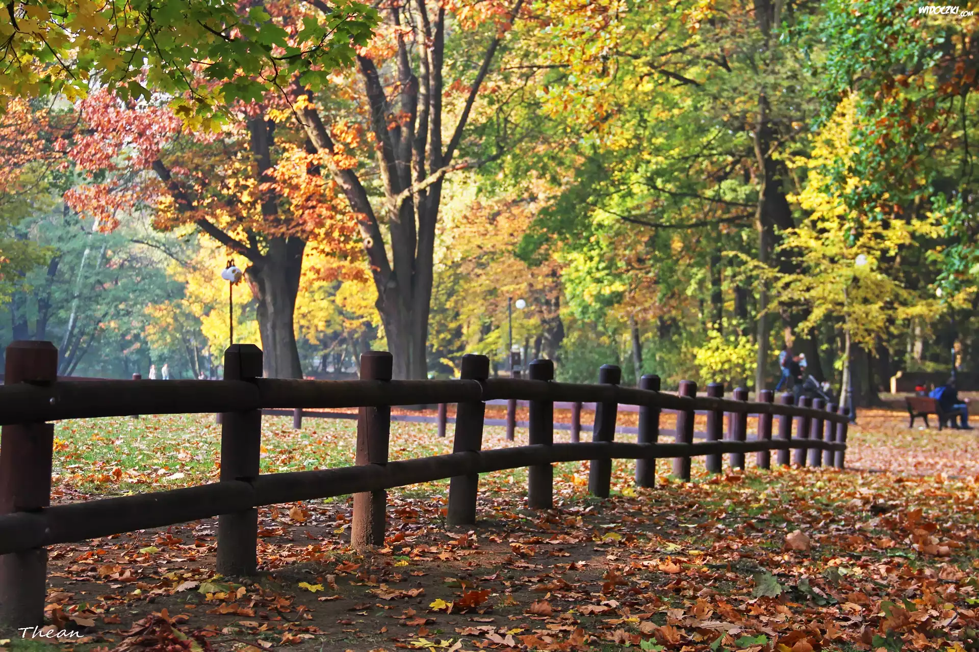 Zdjęcia, Jesienny, Park, Drewniany, Płotek