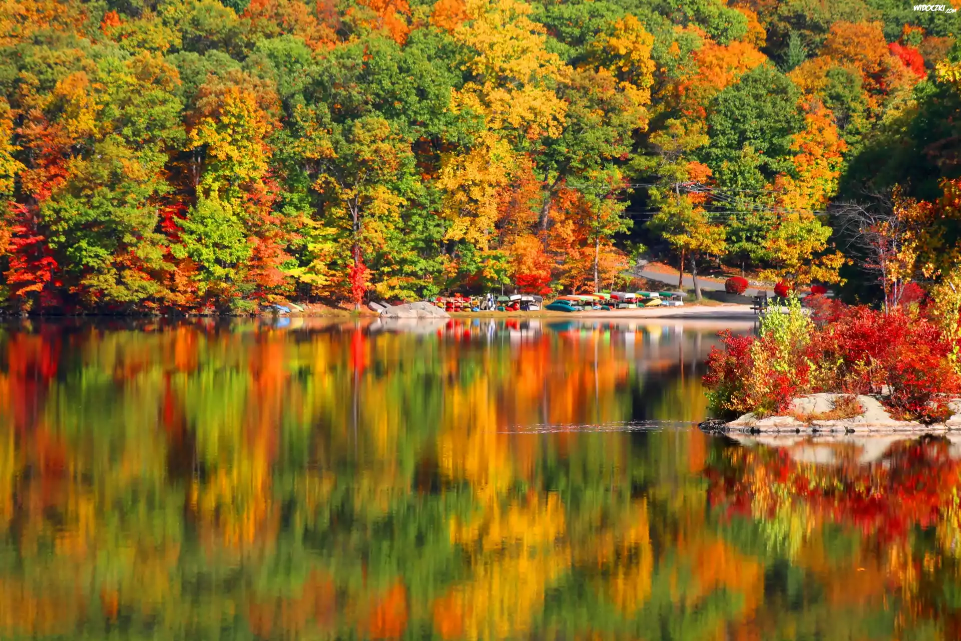 Jezioro, Chmury, Odbicie Lato, Brzozy, Zielone, Krzaki G贸ra, Jezioro Rzeka, Las Ska艂a, Las, Jesie艅 G贸ra, Jeziora Wielkie, Urwisko, Jesienne, Drzewa Rzeka, Las Kasztany Jesie艅, Drzewa, Jezioro Las, Jesie艅 G贸ry, Lasy, Rzeka Dom, Strzecha T臋cza, Las, G贸ry