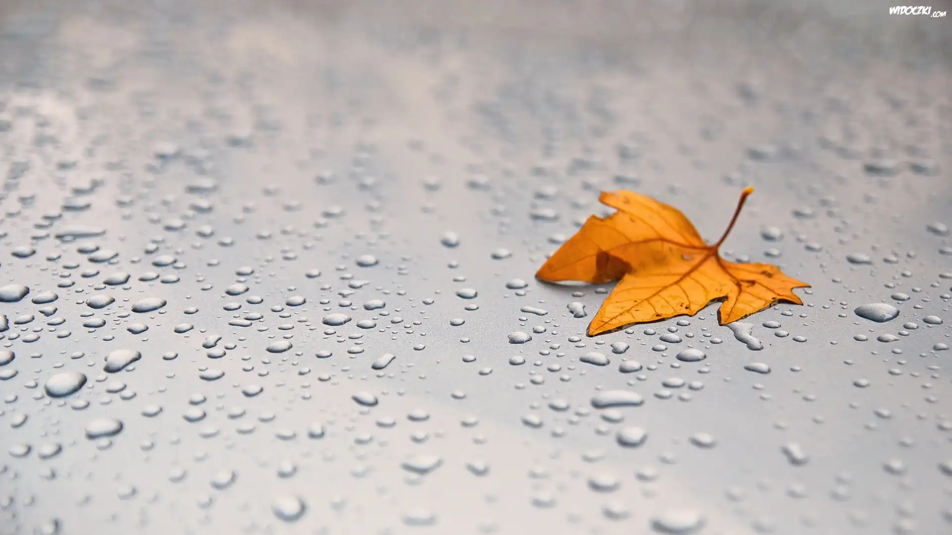 Zdjęcia, Jesienny, Liść, Krople, Deszczu