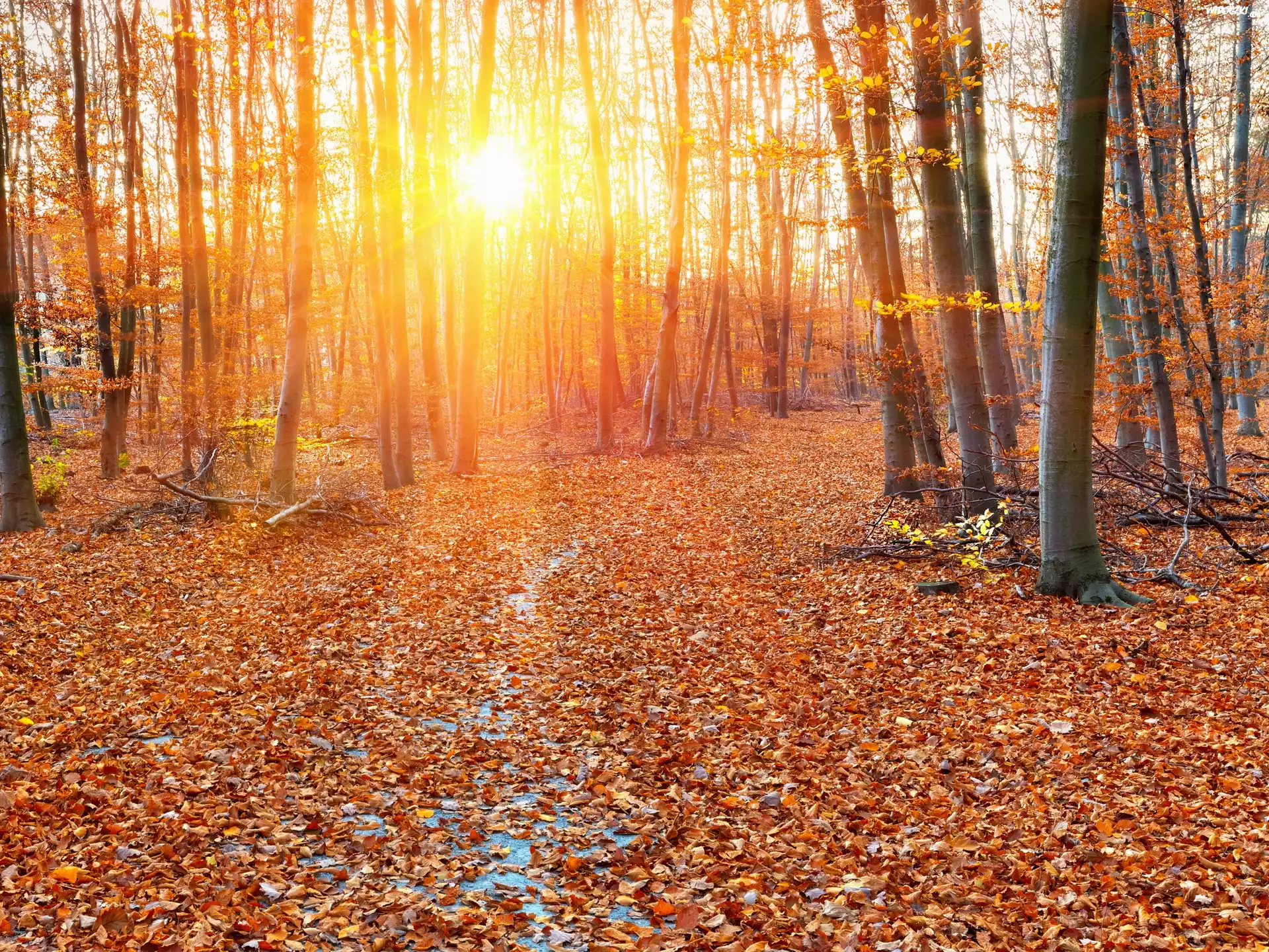 Jesienny, Las, Promienie, Słońca