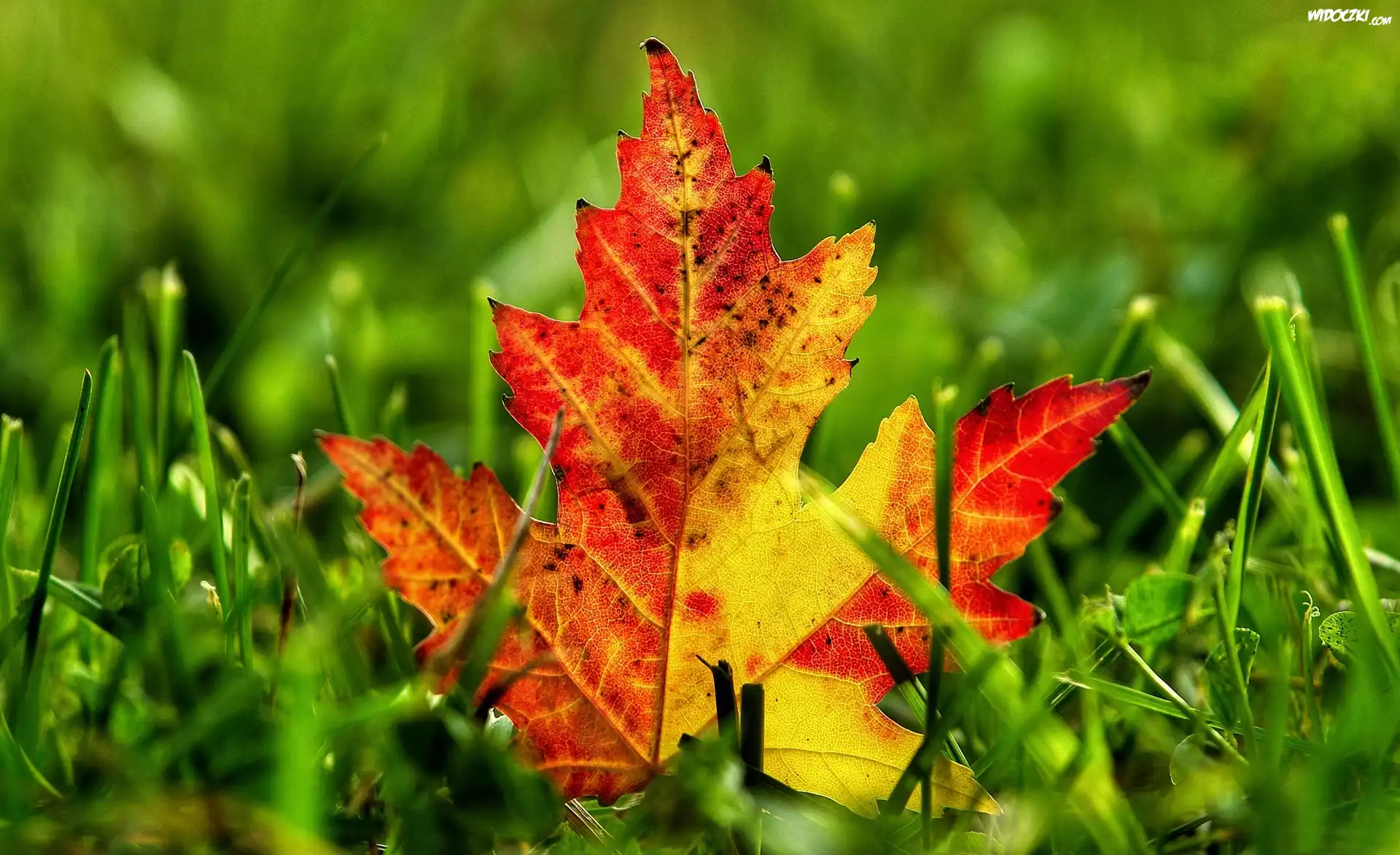Zdjęcia, Trawa, Jesienny, Liść
