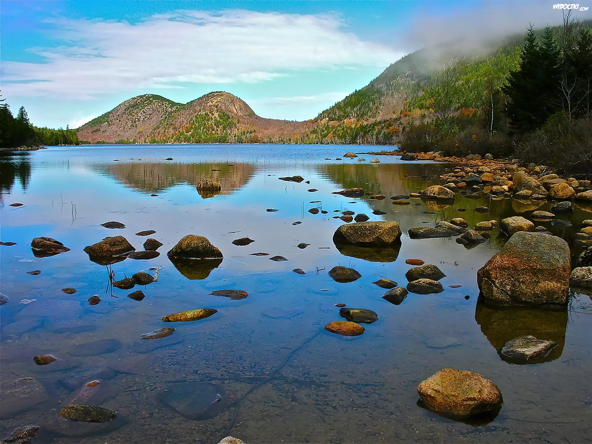 Zdjęcia, Jezioro, Kamienie, Góry, Acadia, Maine