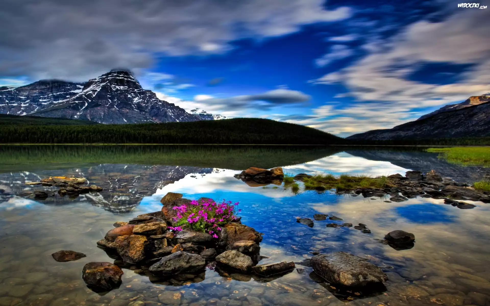 Zdjęcia, Kanada, Prowincja Alberta, Park Narodowy Banff, Jezioro, Kamienie, Góry