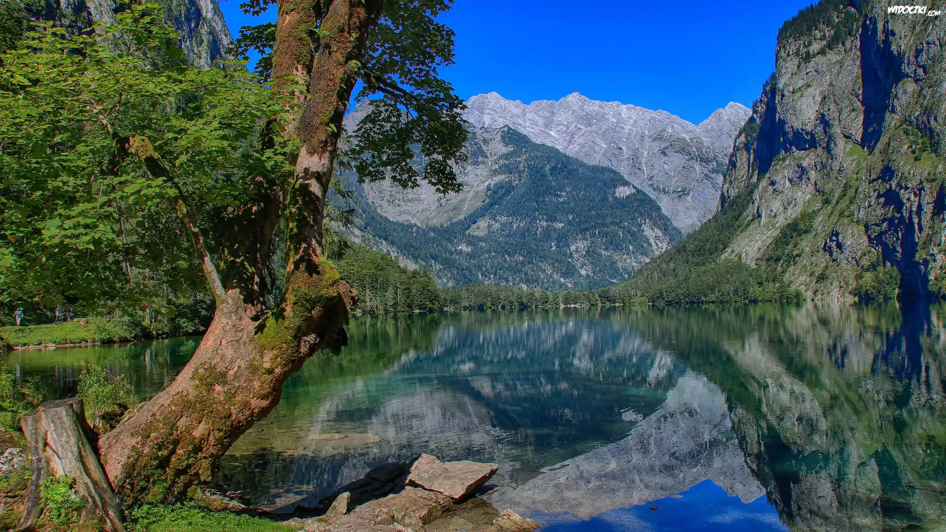 Zdjęcia, Jezioro, Drzewo, Góry, Alpy, Bawaria, Niemcy