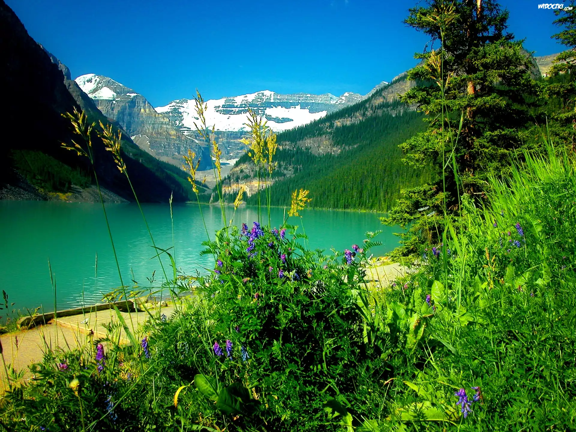 Zdjęcia, Jezioro, Góry, Brzeg, Rośliny