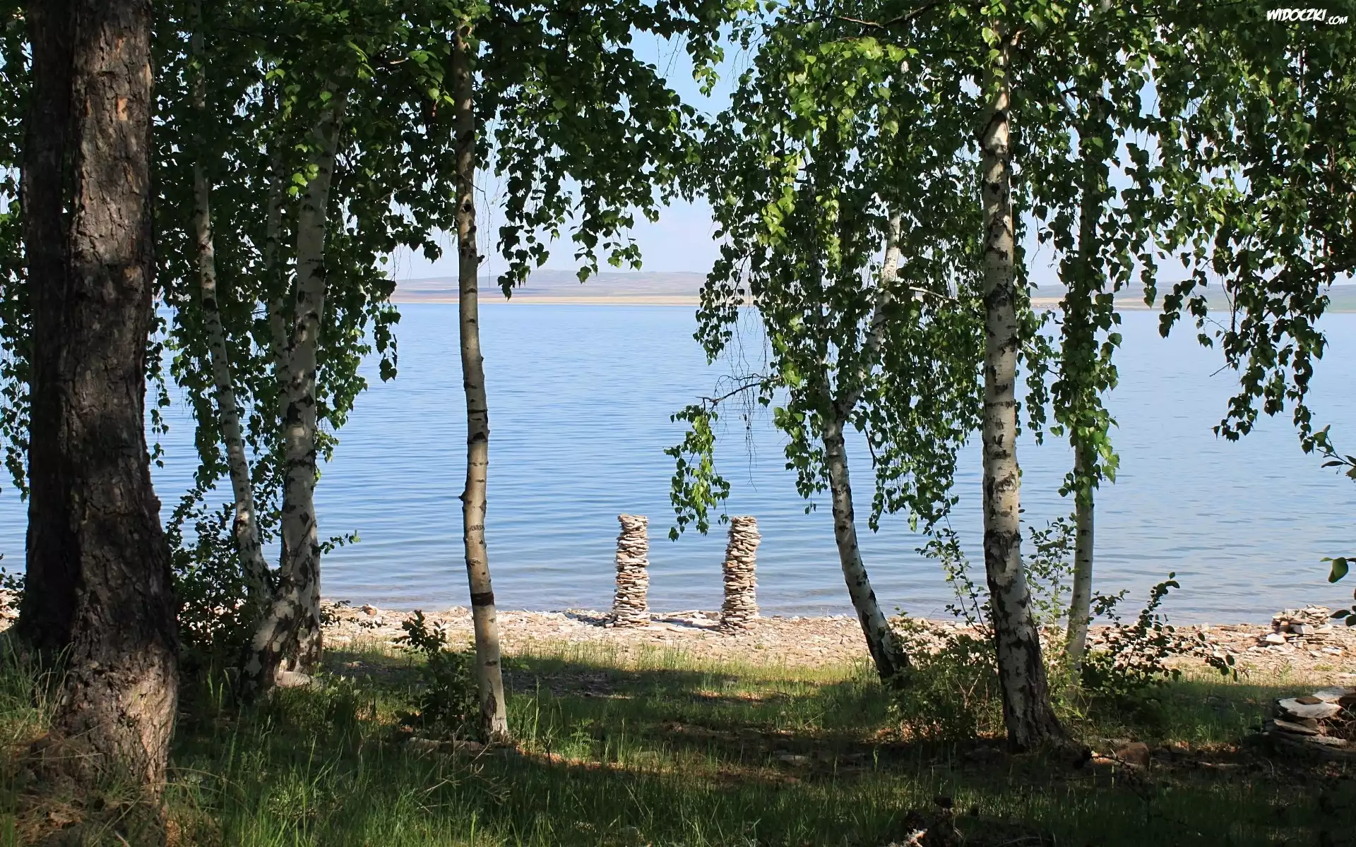 Jezioro, Kamienisty, Brzeg, Drzewa