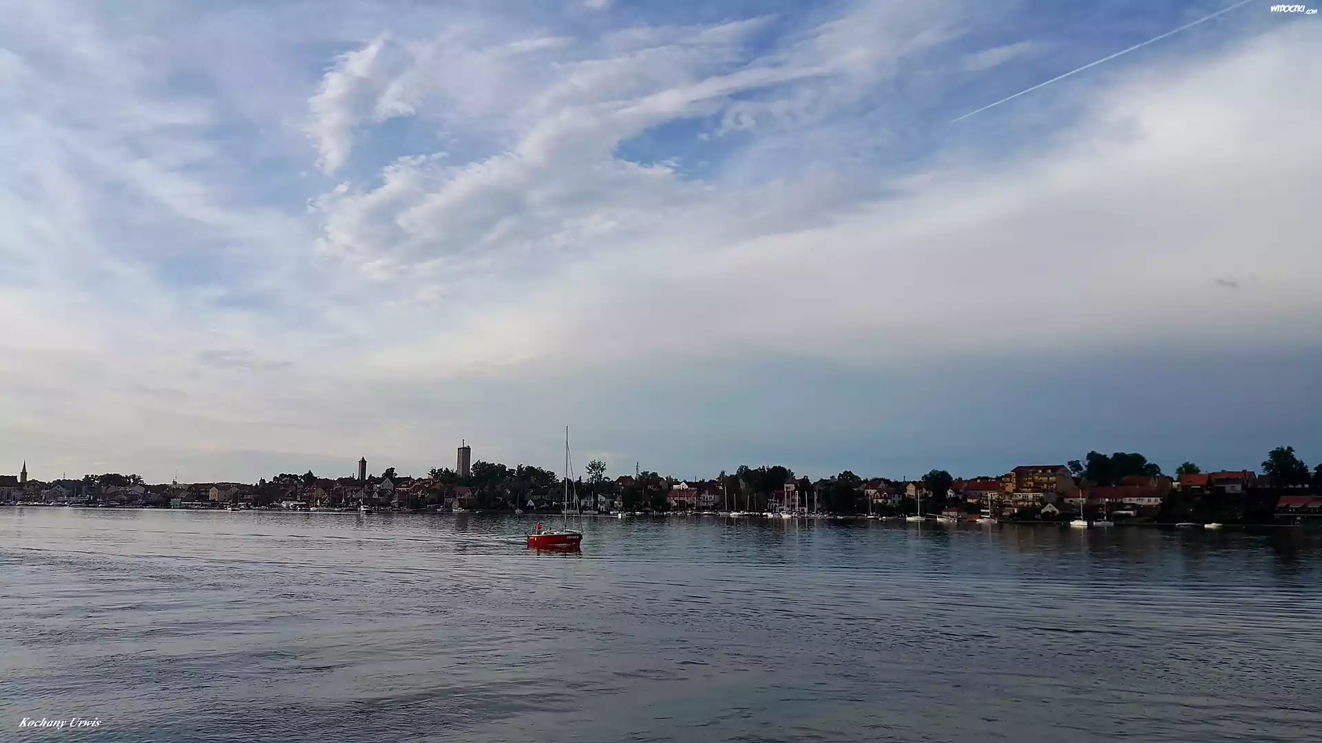 Zdjęcia, Jezioro, Statek, Brzeg, Domy