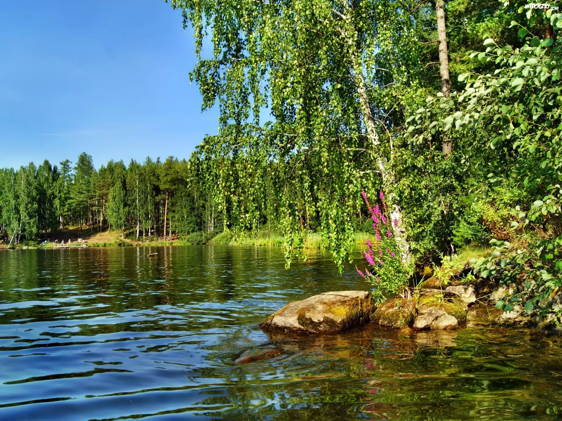 Zdjęcia, Jezioro, Brzeg, Brzoza, Las