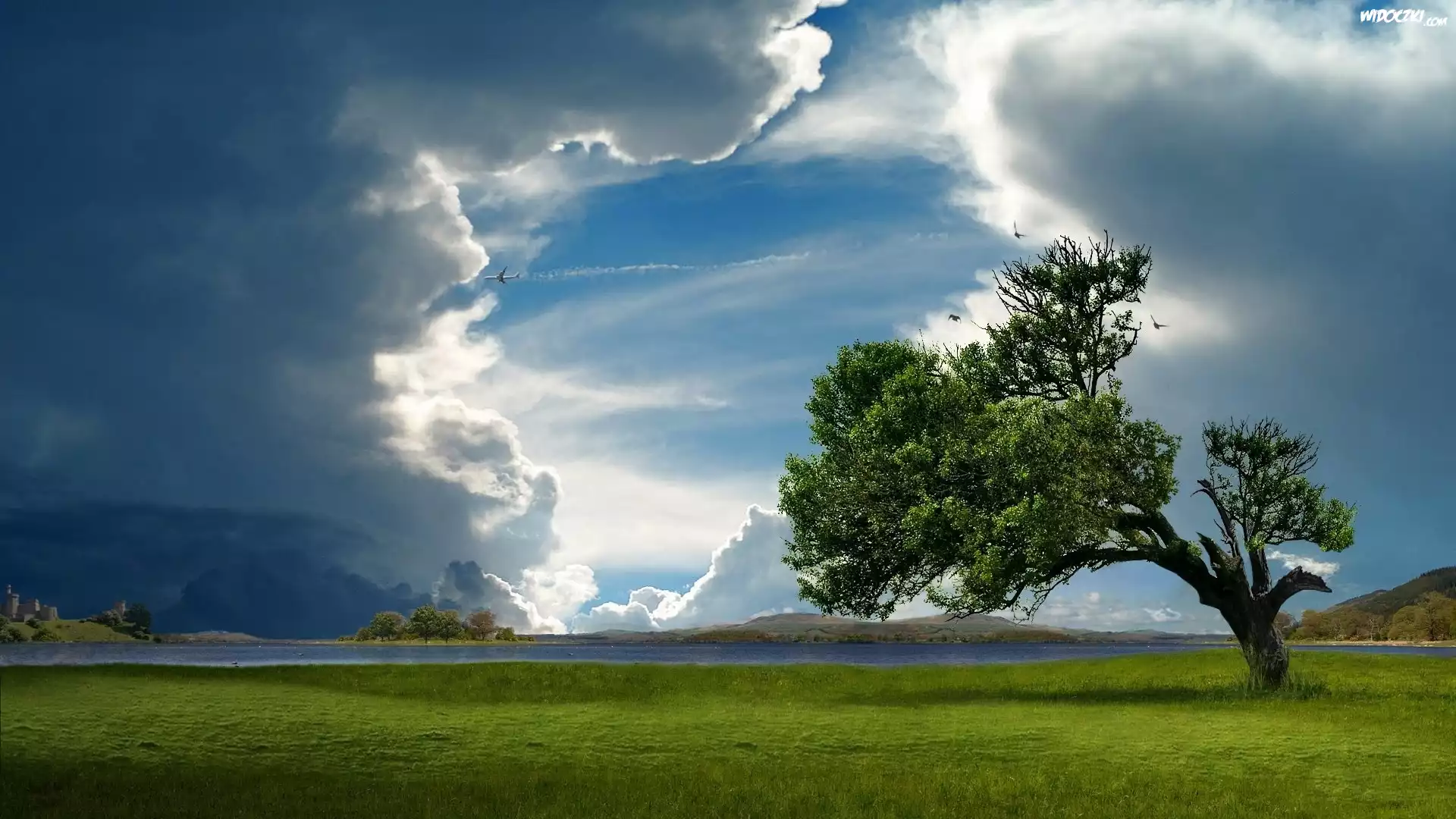 Zdj臋cia, Chmury, Jezioro, Drzewo