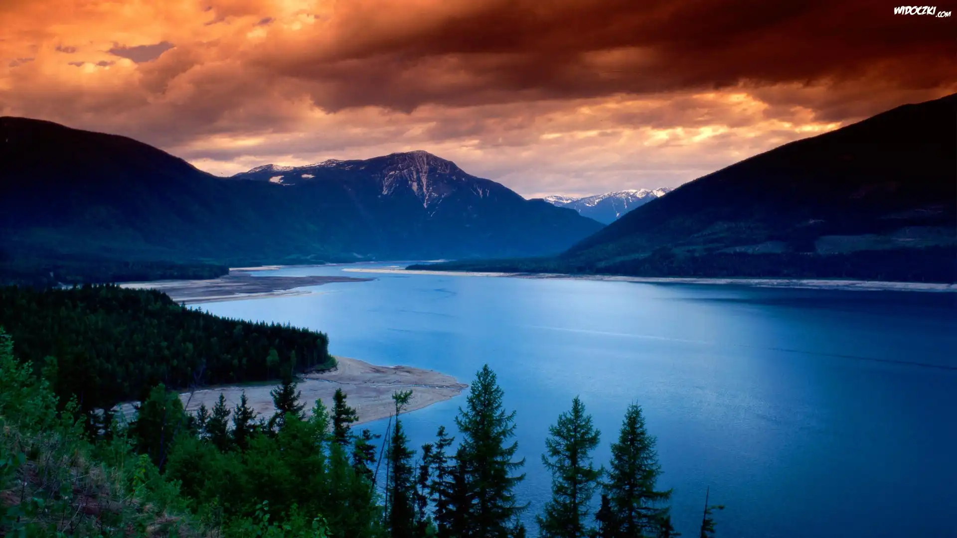 Jezioro, Góry, Chmury, Kanada