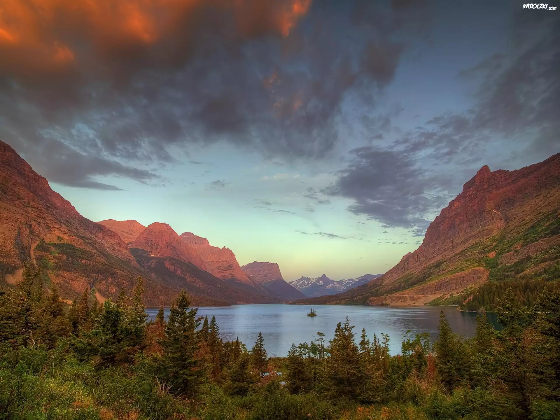 Zdjęcia, Jezioro, Góry, Chmury, Las