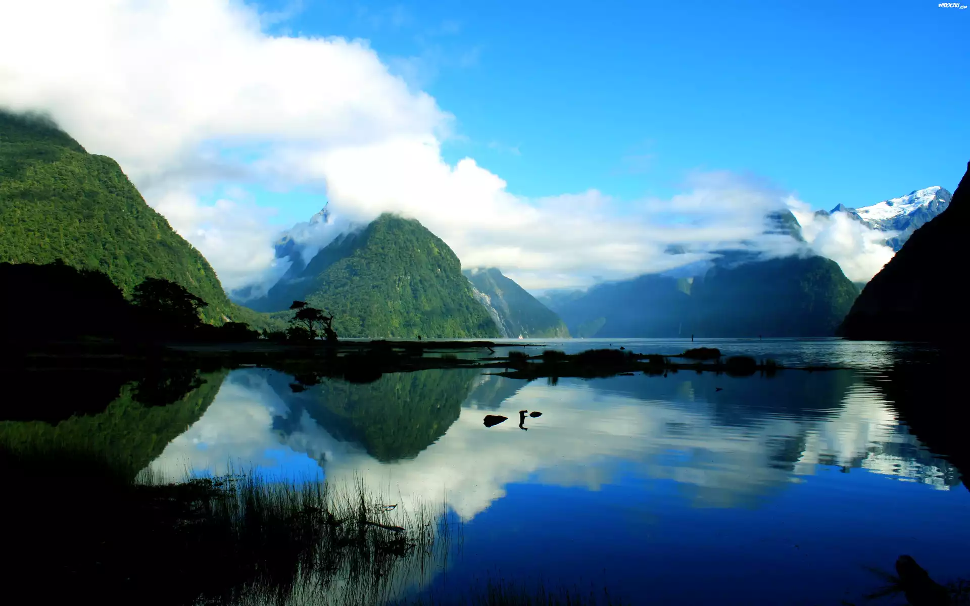 Zdjęcia, Jezioro, Góry, Chmury, Odbicie