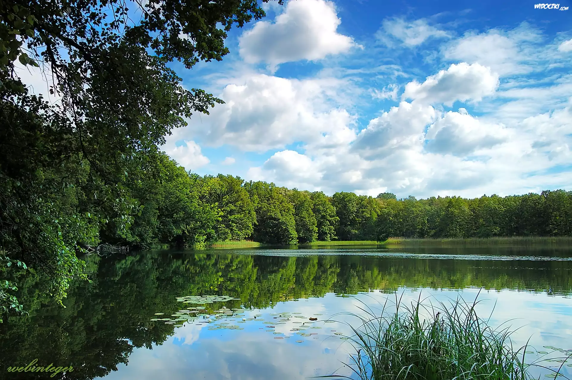 Zdj臋cia, Jezioro, Las, Chmury, Odbicie