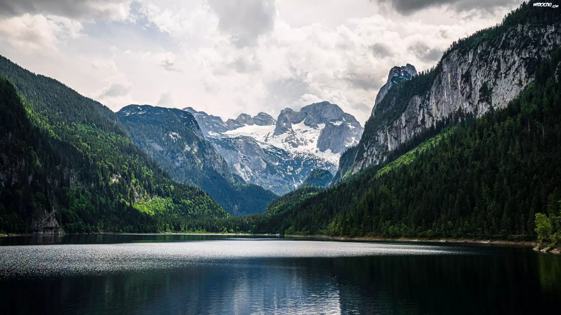 Zdjęcia, Austria, Góry Dachstein, Jezioro, Gosauseen, Zielone, Lasy