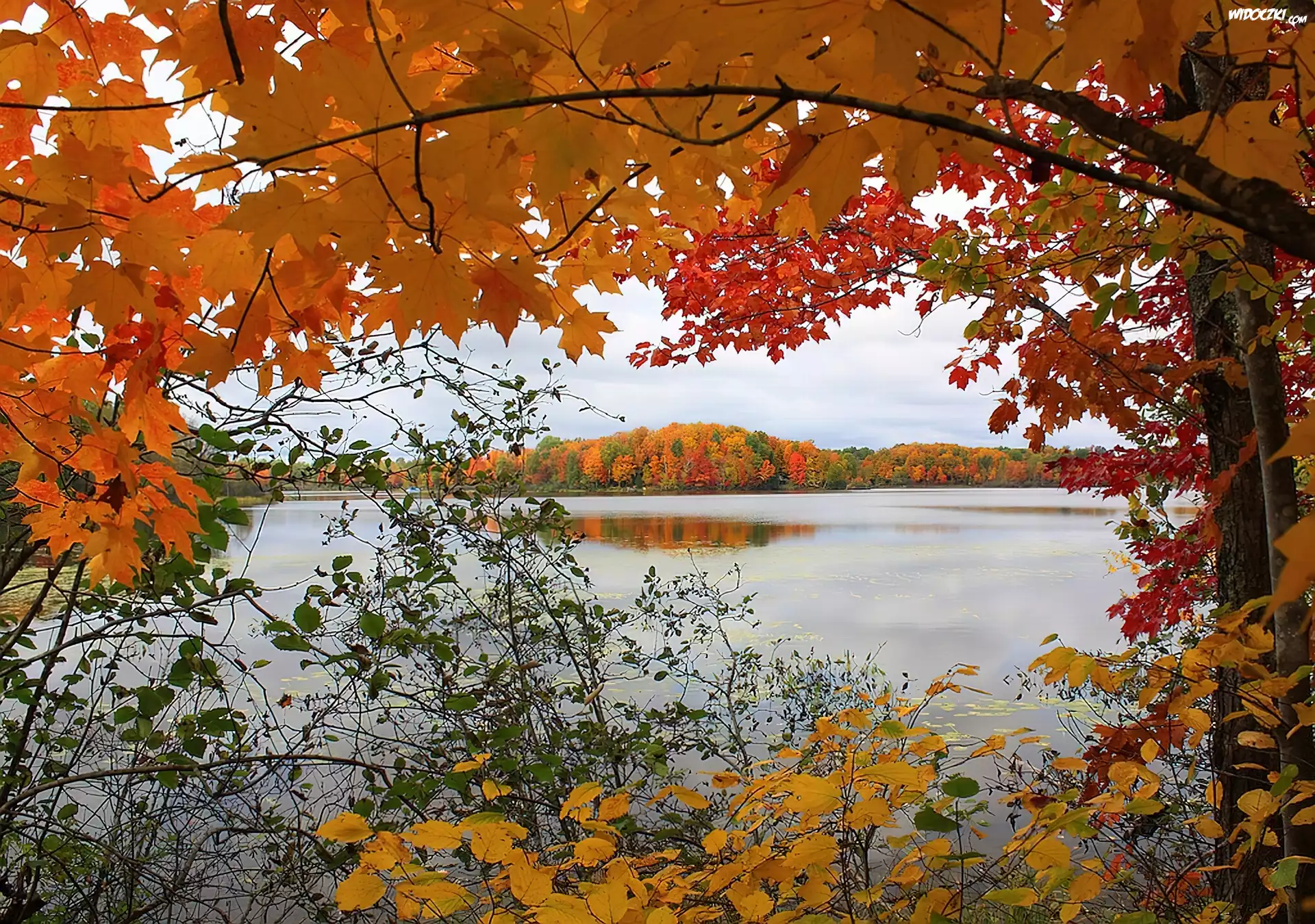 Zdjęcia, Jezioro, Drzewa