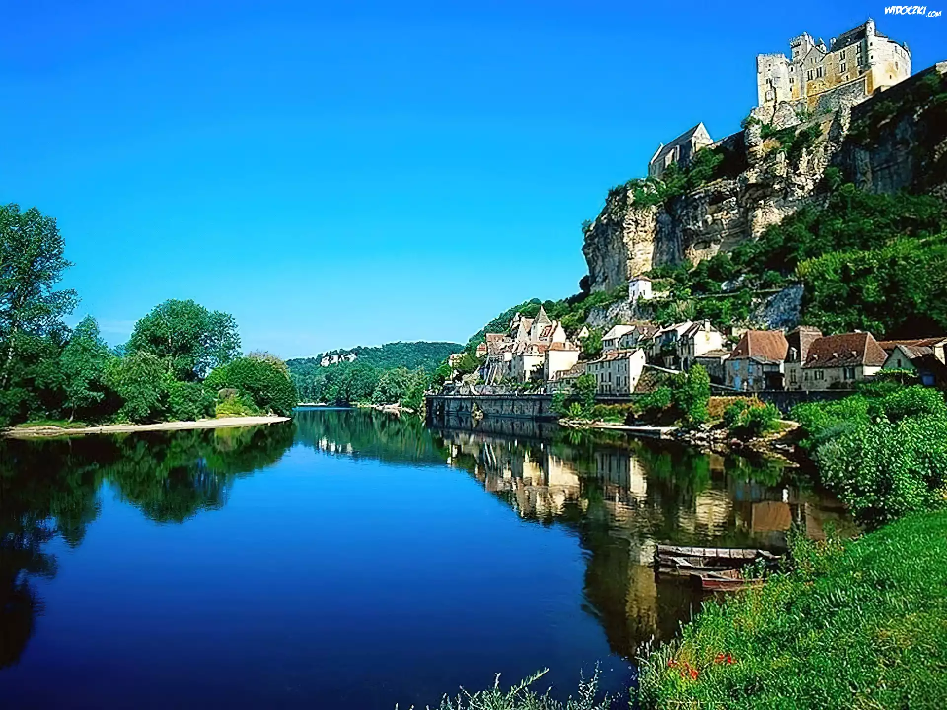 Zdjęcia, Jezioro, Skała, Domy, Drzewa Rośliny