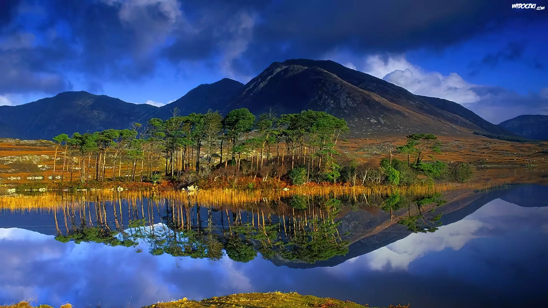 Jezioro, Góra, Drzewa, Odbicie