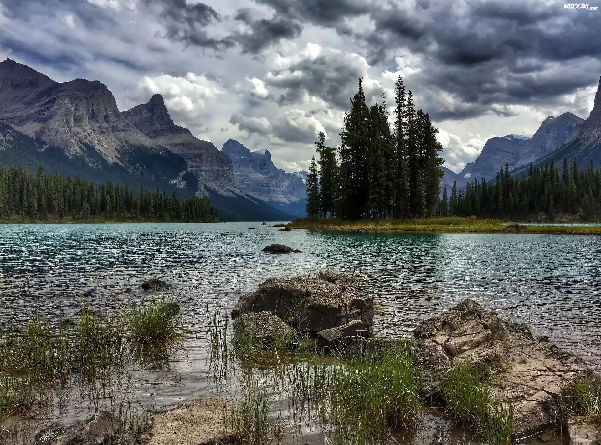 Zdjęcia, Jezioro, Góry, Drzewa, Kamienie