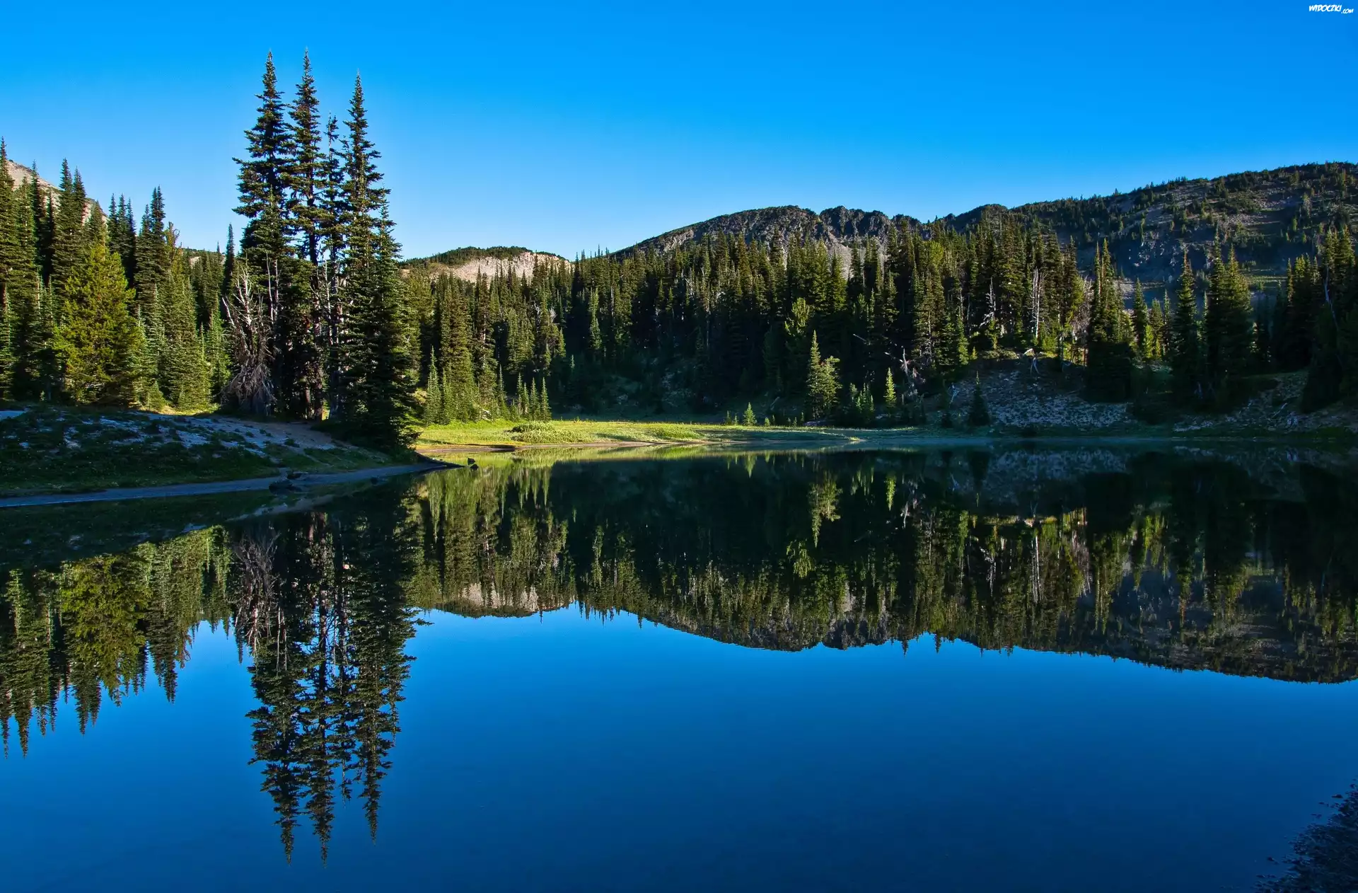 Jezioro, Góry, Drzewa, Odbicie