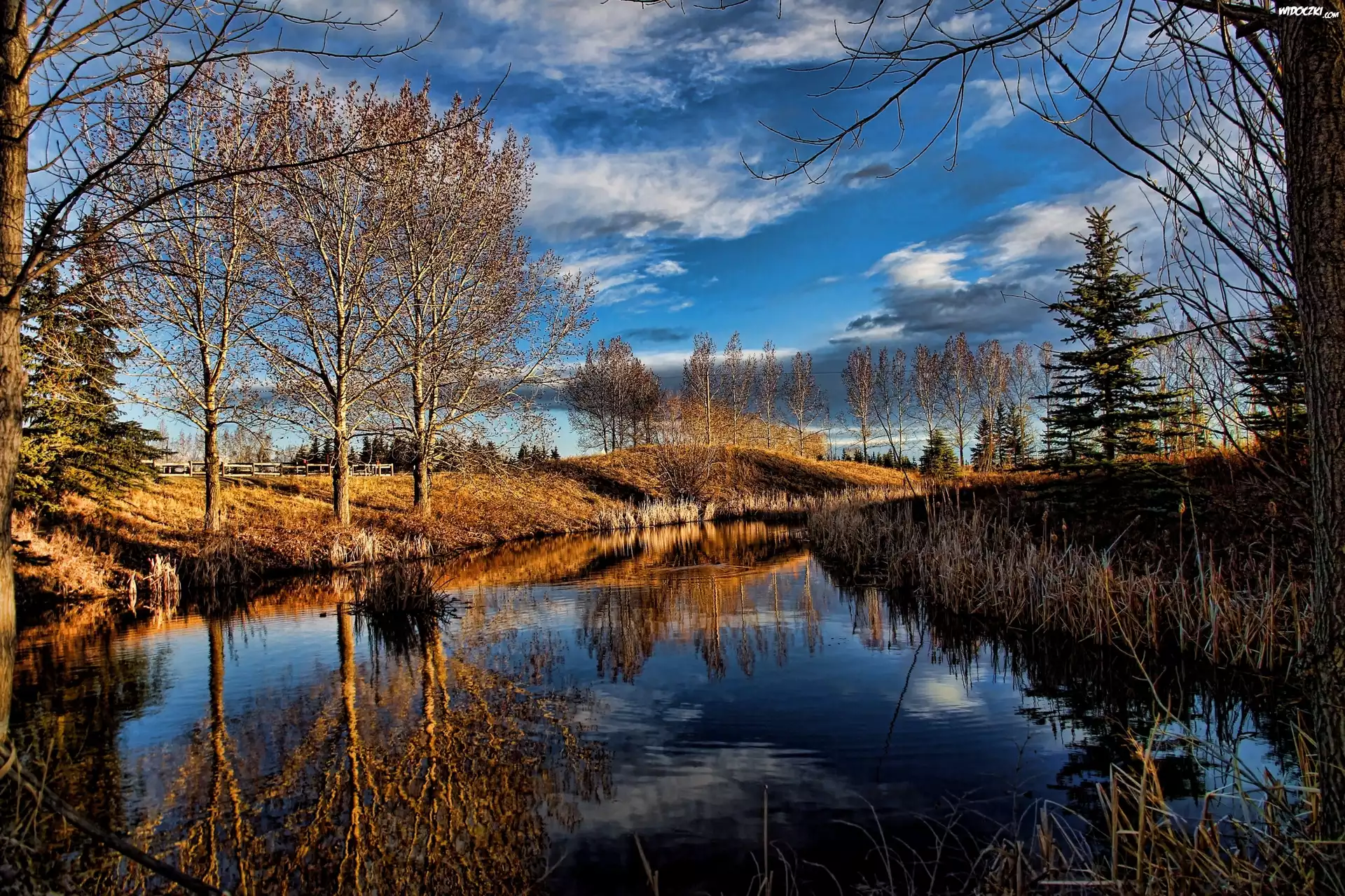 Zdjęcia, Jezioro, Jesień, Drzewa, Niebo