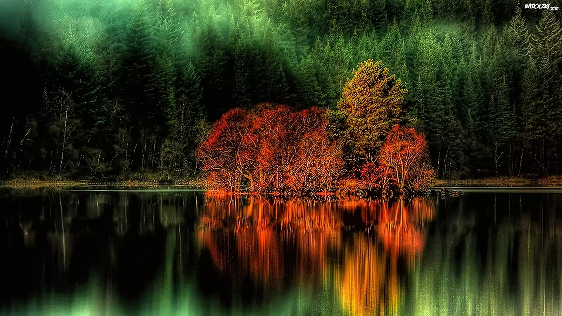 Drzewa, Jezioro, Jesień